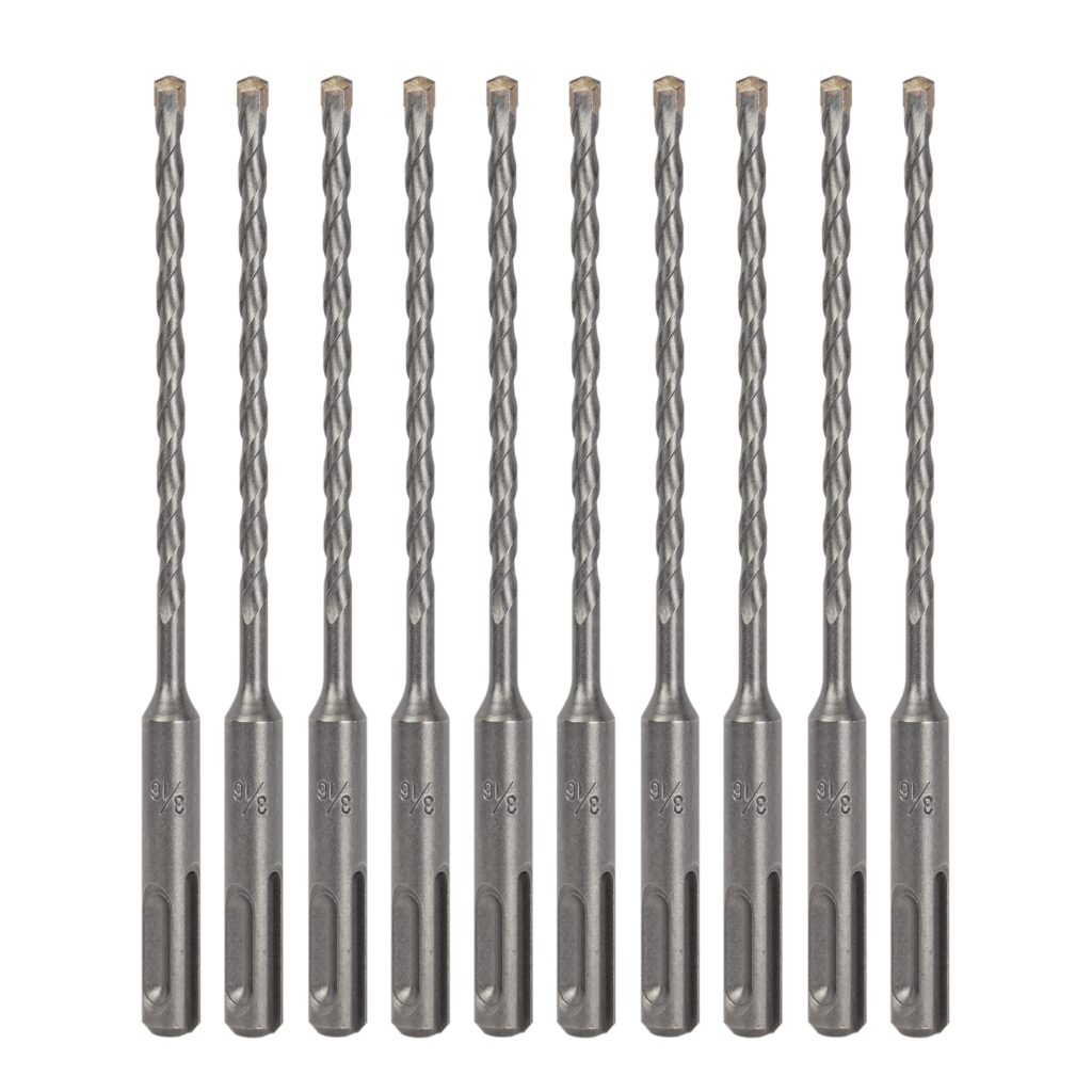 • 10-pack set of 3/16” x 6” SDS-Plus rotary hammer drill bits (3/16” x 4” x 6” sizing listed)