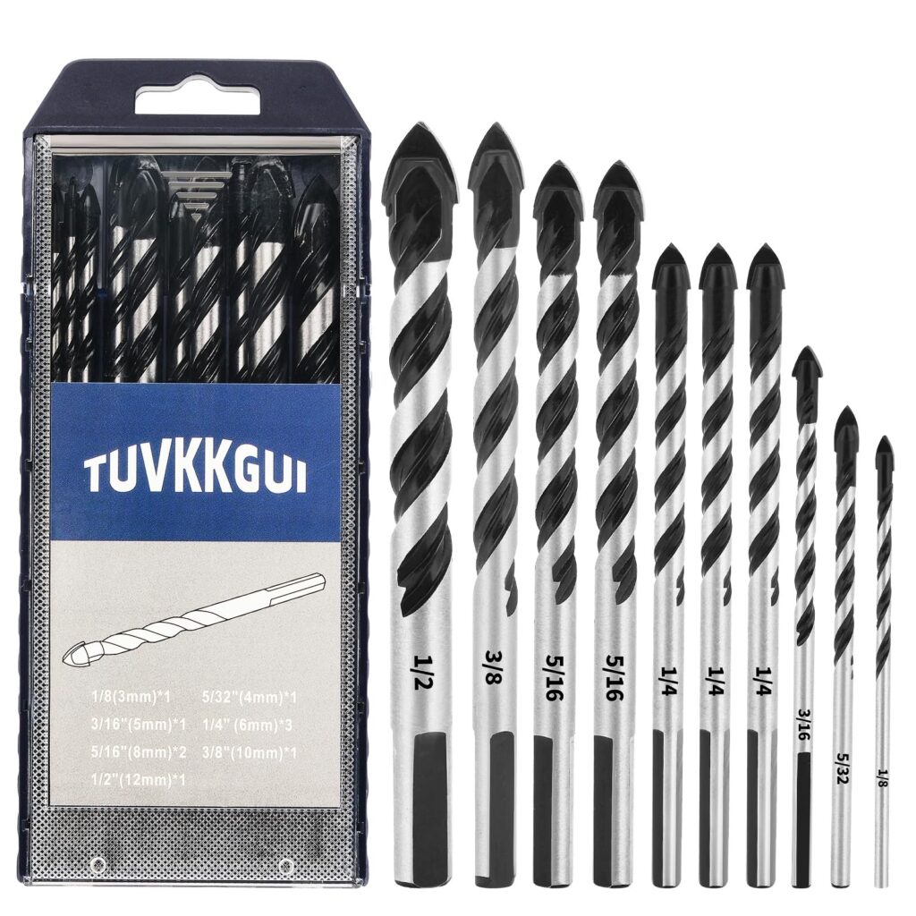 10PCS Masonry Drill Bit Set, Carbide Tip for Concrete/Brick/Tile/Glass/Wood/Etc, Industrial Strength, Includes Sizes: 1/8″ – 1/2″ by Tuvkkgui