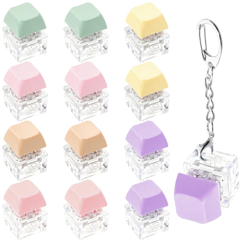 • 12-piece macaron-style single-key keyboard fidget keychain set