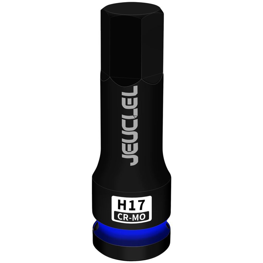 If you need a dedicated 17mm (H17) hex bit socket for higher-torque fastening, this JEUCLEL impact socket is designed to pair with 1/2-inch impact wrenches and ratchets for quick tightening of hex-drive fasteners.