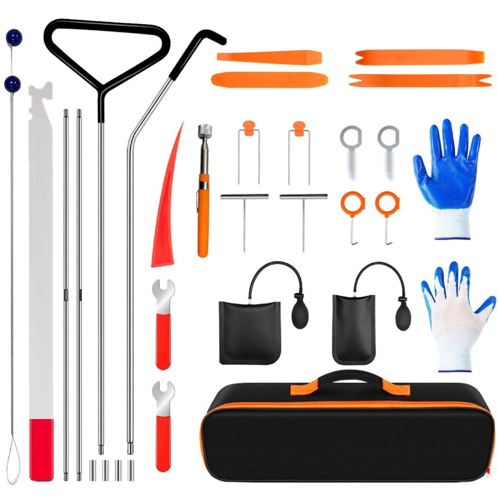 This set is geared for versatility: use it for basic car repairs, interior adjustments, vent maintenance, sound system installs, and tightening down loose fasteners. It also includes standout pieces like a 67-inch J-type long ditch tool and an air pump, helping cover a wider range of scenarios than a basic glovebox kit.