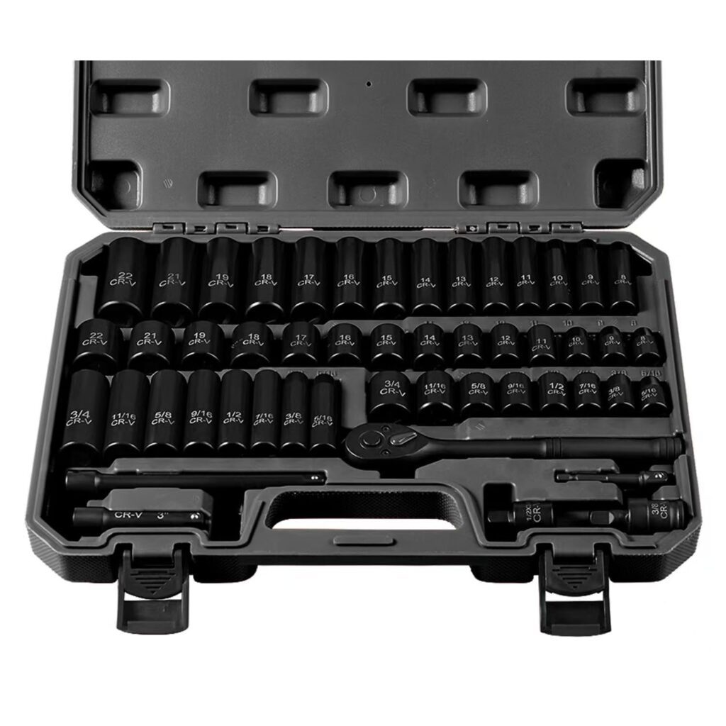3/8″ Drive Impact Socket Set 50-Piece, SAE (5/16-3/4) & Metric (8-22mm), Deep & Shallow with 3/8-Inch Ratchet Handle, 6 Points,Cr-V, Extension Bars, Universal Joint, Gift for Men 3/8″ 50-Piece Impact Socket Set-Black