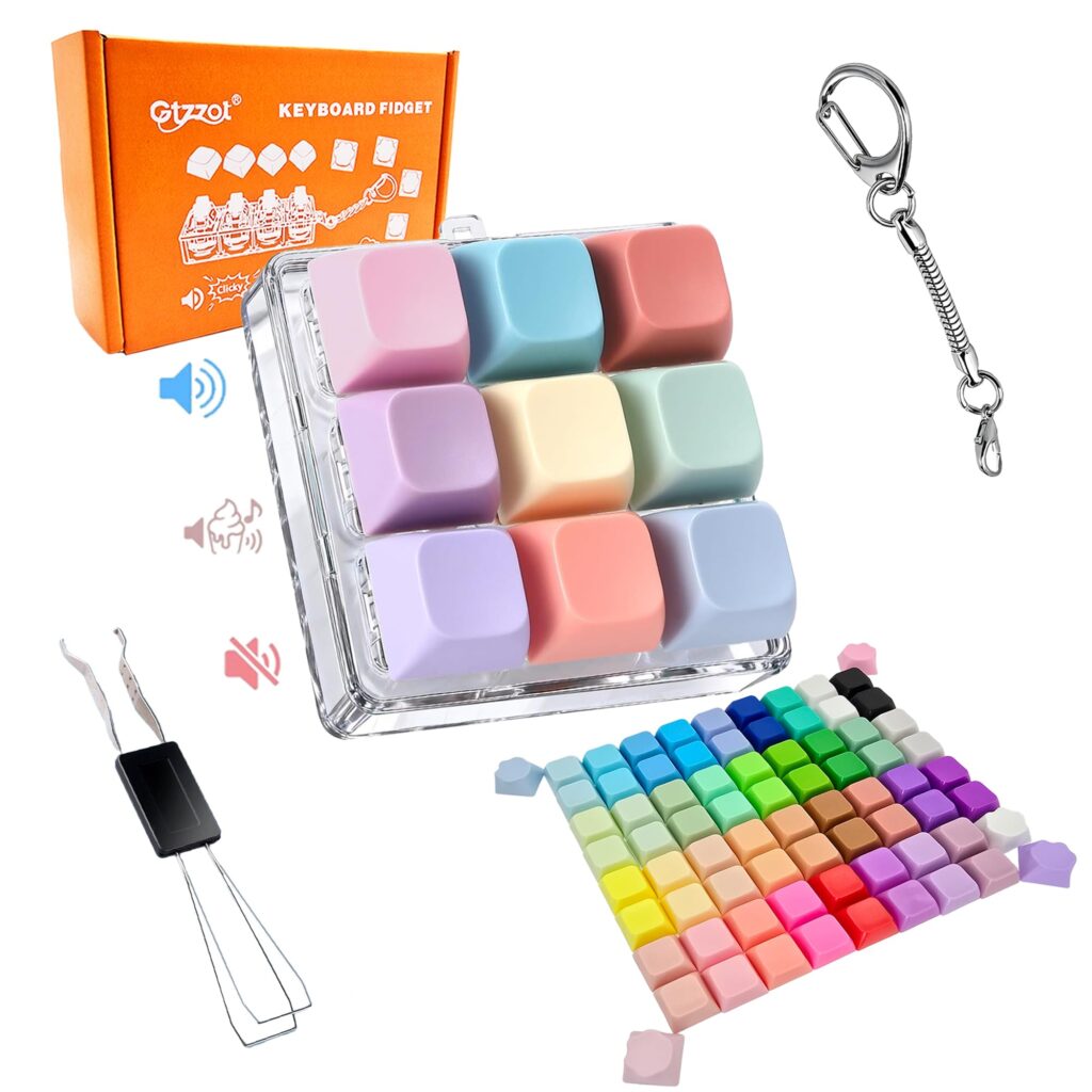 The Gtzzot 9-in-1 Keyboard Fidget Toy is a small, satisfying clicker designed for anyone who loves mechanical-keyboard style feedback—without hauling around a full board. It features a 9-key layout with three different switch feels (Clicky, Creamy, and Silent) so you can match your environment, from home to quiet offices and libraries.