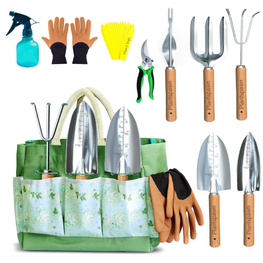 - Includes essential tools such as pruning shears, trowel, transplanter, and cultivator