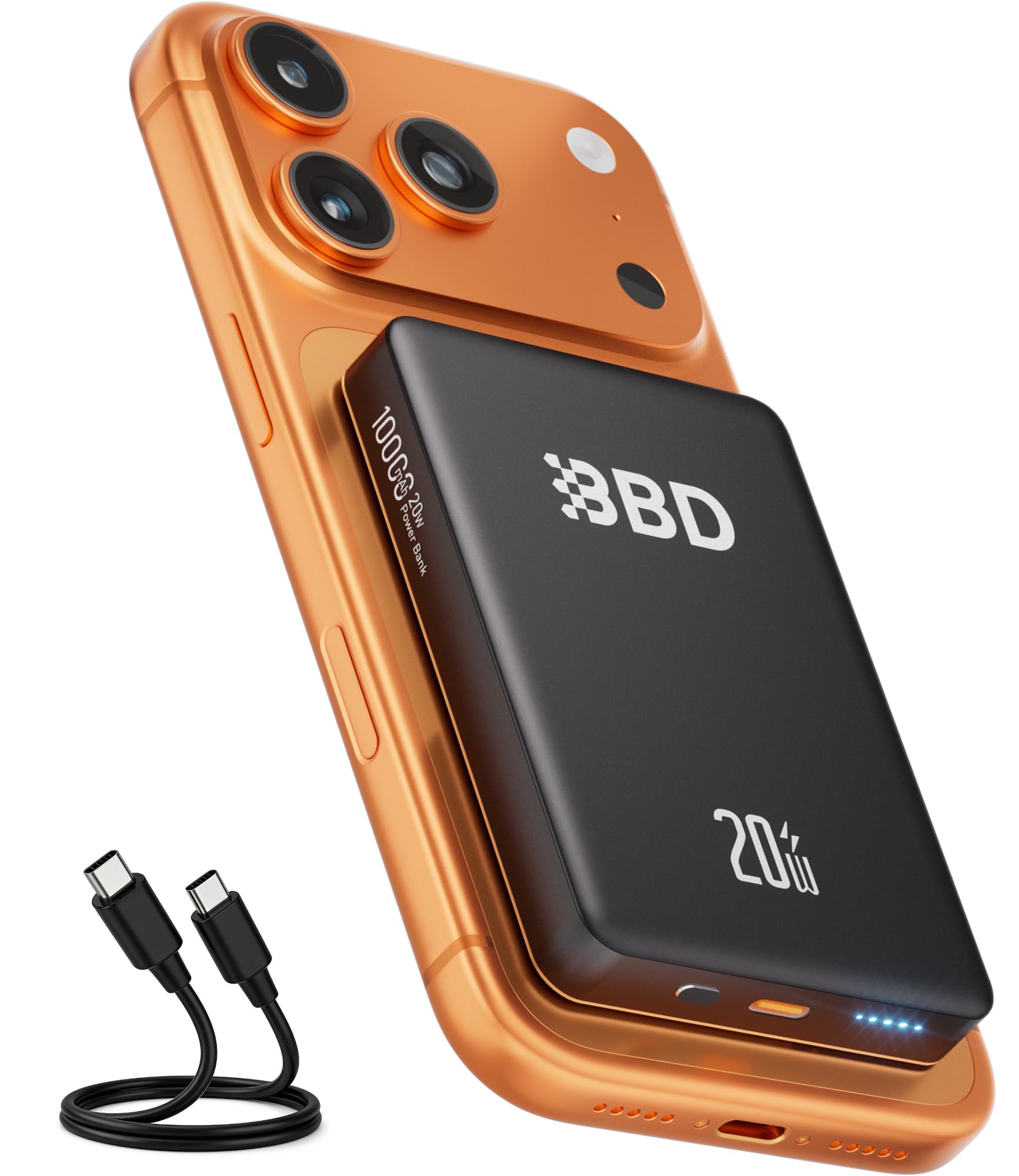 BLAVOR Solar Power Bank 20000mAh Built-in Cables, Wireless Charger for Apple Watch, 20W Fast Charging Battery Pack with USB C, Flashlight, Solar Charger for iPhone, iPad, iWatch, Samsung Orange