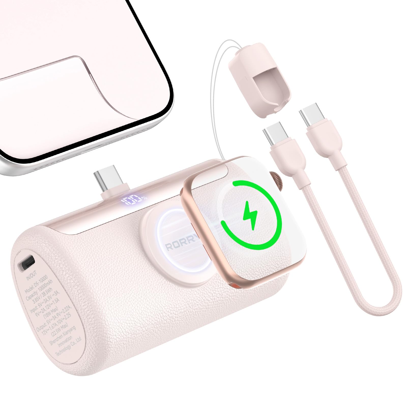 charmast 20000mAh Portable Charger with Built in Cables, 22.5W Travel Power Bank Fast Charging, USB C Cell Phone Battery Pack for iPhone 16/15/14/13/12/11 Series, iPad, Samsung, Android, Tablet White