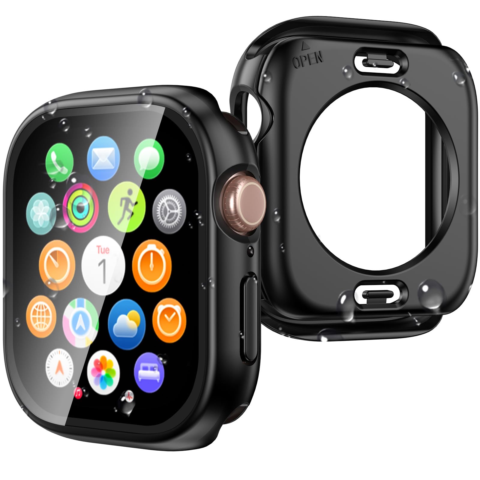 A snug, 3-in-1 40mm Apple Watch case that combines a frosted hard bumper, built-in tempered glass screen protector, and PC back panel for 360° everyday protection—with IP67 daily waterproofing at the screen seal and easy access to buttons, charging, and controls.