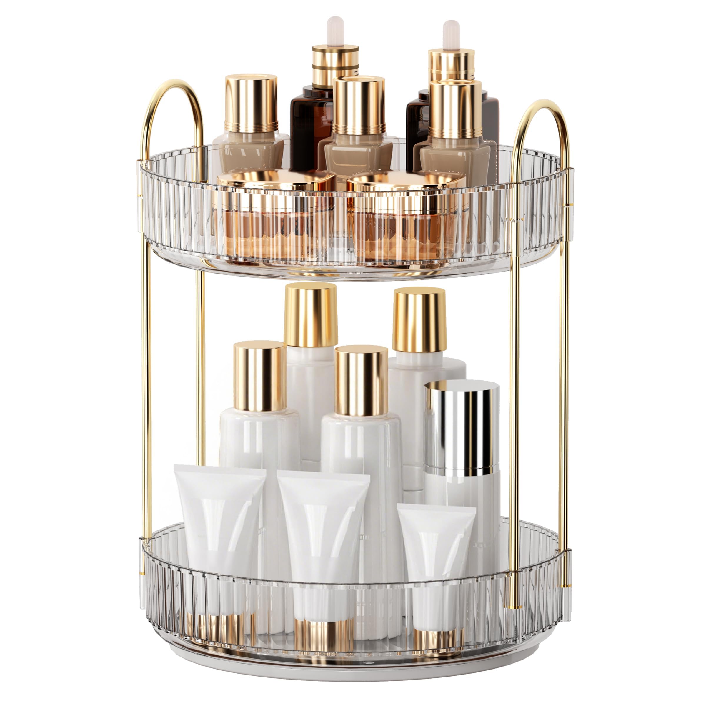 A compact, 360-degree rotating vanity tray that helps corral perfumes, lotions, skincare, and everyday beauty essentials on your countertop, dresser, or bathroom sink.