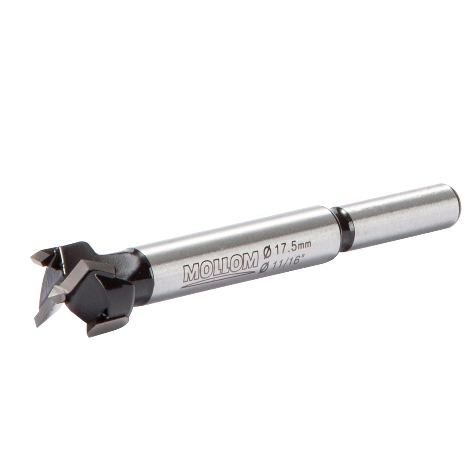 A precision-focused 11/16″ (17.5mm) Forstner bit from Mollom featuring a thick 1.7mm YG8 carbide blade and an 8mm round shank—built for clean, accurate holes in wood-based materials and plastic (not for metal).