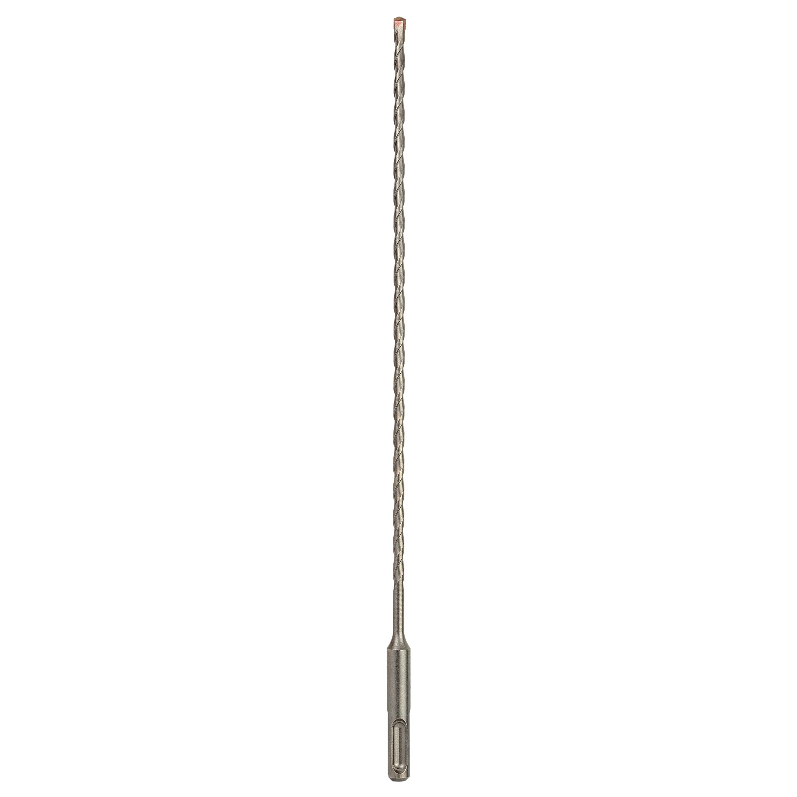 A long 3/16″ SDS-Plus rotary hammer drill bit from Sabre Tools with a 2-flute, self-centering carbide tip—built for drilling into brick, stone, concrete, and block with efficient debris removal for cooler running.