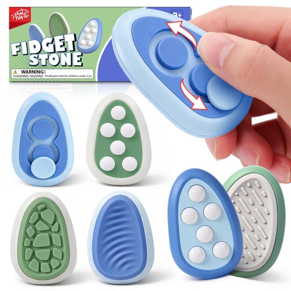 If you like having options for different moments—quiet meetings, long study sessions, or high-pressure days—the SMALL FISH 4 Pack Fidget Stone set is built around variety. Each piece combines multiple tactile elements so you can switch between a clicky slider track, rolling beads, and textured silicone when you want a more silent, rub-based sensory feel.