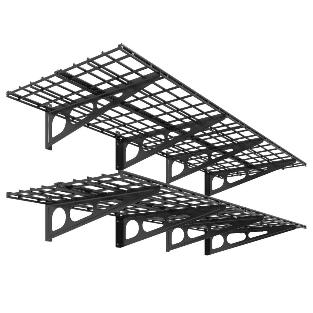 FLEXIMOUNTS 2-Pack 2x6ft Garage Shelving 24-inch-by-72-inch Wall Shelf Garage Storage Rack Floating Shelves, Black, Classic Series 2 pack-2×6 ft Black