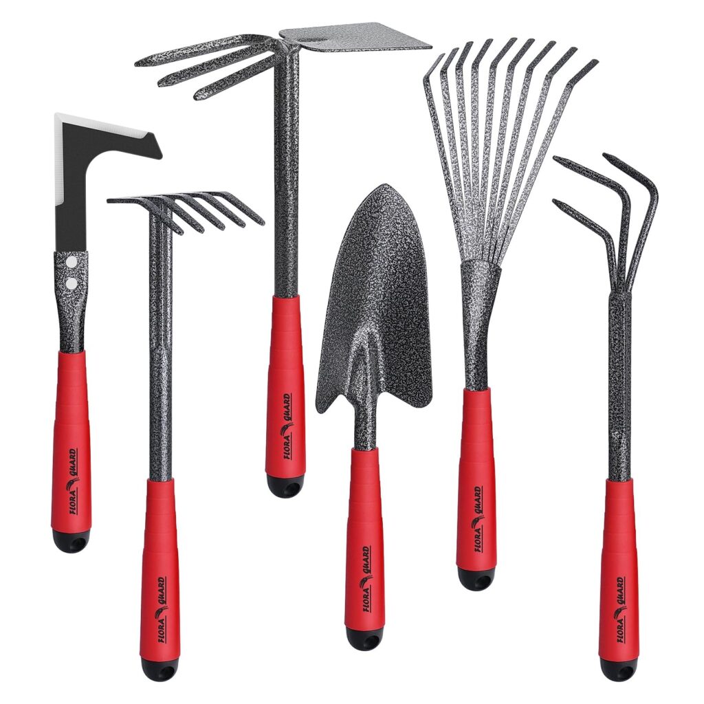 The FLORA GUARD Garden Tools Set is a practical, heavy-duty starter kit for everyday planting and yard upkeep. With six essential hand tools, itâs designed to cover common tasks like digging, weeding, loosening soil, and general garden cleanupâwithout needing to buy pieces separately.