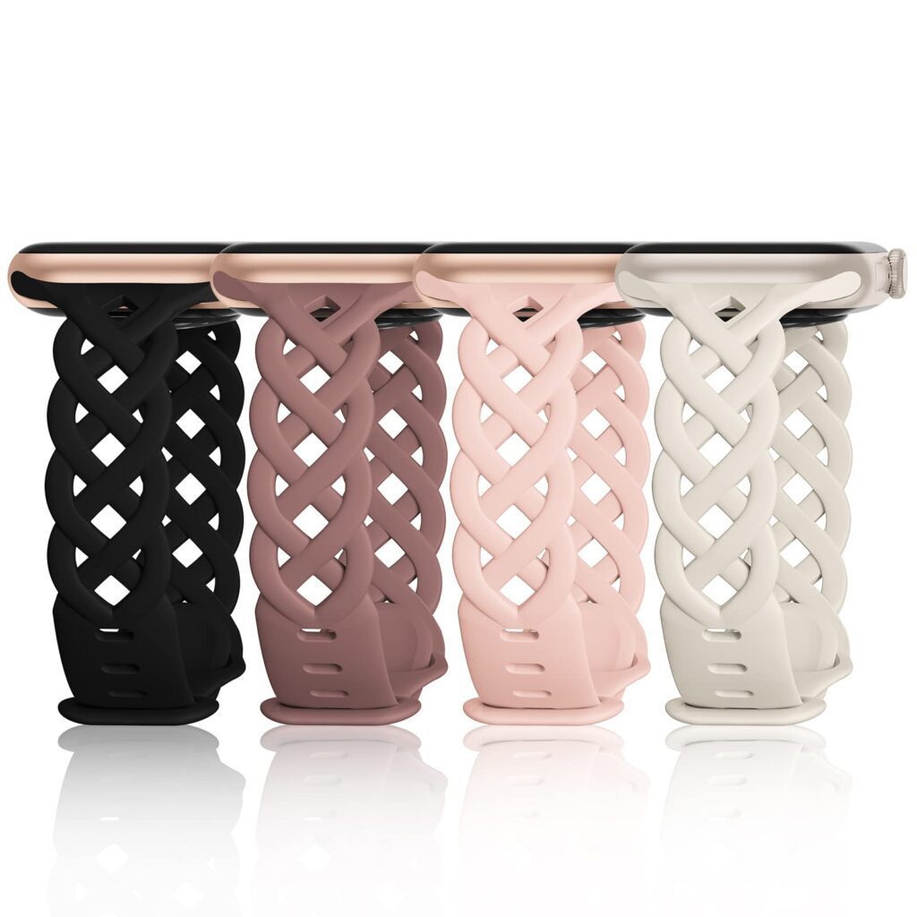 The iWabcertoo Slim Silicone Bands set is an easy way to refresh your Apple Watch look without spending much. This 4-pack features a thin, hollow-out braided design that blends a bracelet-inspired style with a narrow lace pattern—ideal for everyday wear, travel, and casual outfits.
