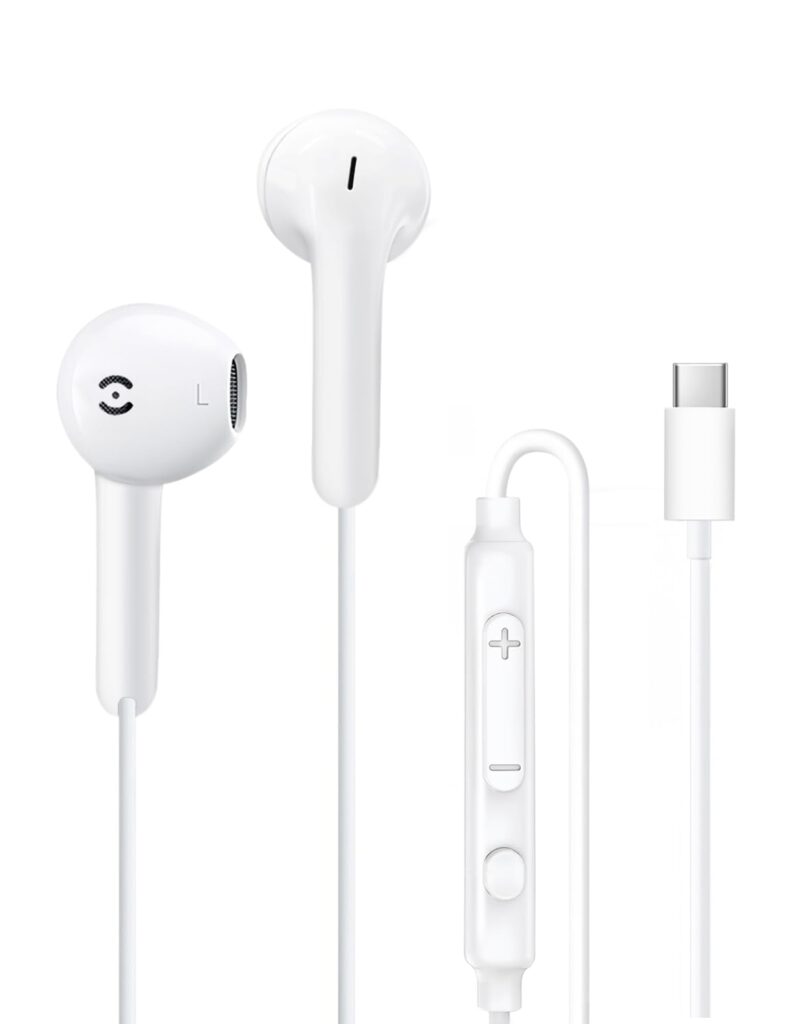 Comfort-wise, these use a semi-in-ear style that avoids silicone eartips—helpful if you don’t like the ā€œsealedā€ feeling of traditional in-ears. There’s also a built-in DAC chip intended to deliver clear audio directly from your device’s USB‑C port, plus an inline microphone and volume controls for calls, classes, and day-to-day listening.