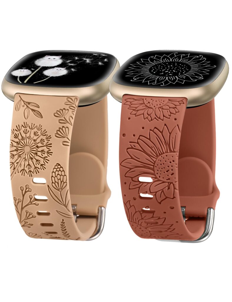 If you want an easy way to refresh the look of your Fitbit without buying a whole new watch, the Minyee Floral Engraved Band set delivers a fun, feminine upgrade. This 2-pack includes engraved designs inspired by wildflowers/dandelions and sunflower-themed holiday elements—made to stand out while still feeling lightweight for everyday wear.
