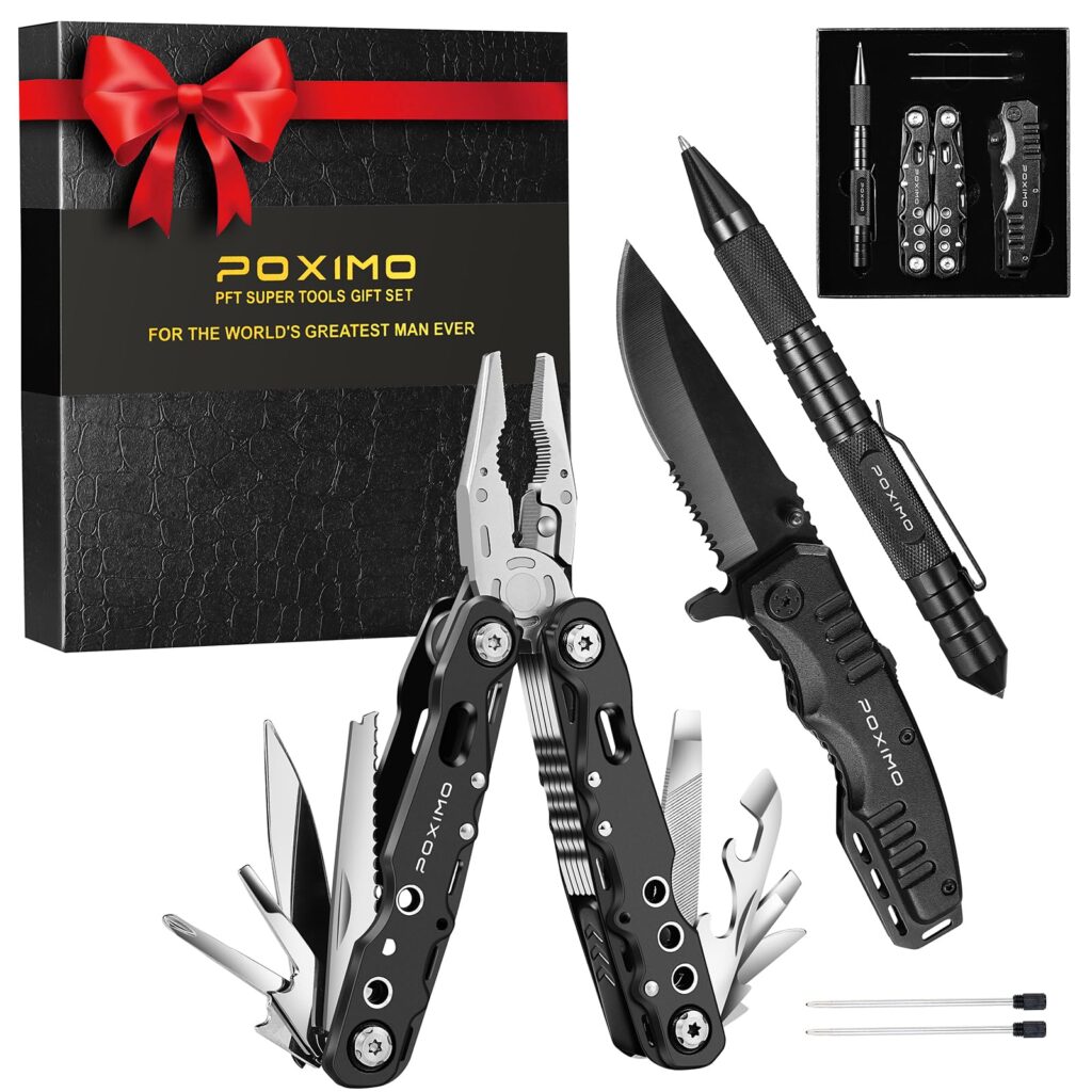 If you’re shopping for a practical gift that feels substantial, the POXIMO 3‑in‑1 EDC Survival Kit bundles three full-size everyday-carry staples in one package: 14‑in‑1 multi-tool pliers, a folding pocket knife, and a tactical pen. It’s designed for the guy who likes to be prepared—whether that means quick fixes around the house, keeping tools in the car, or packing for camping and hiking trips.