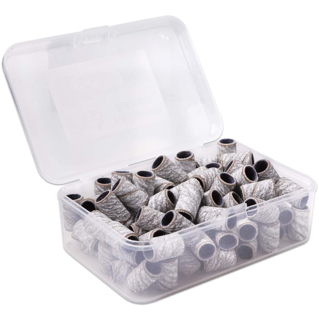 With a coarse 120-grit surface, these bands are made for quick smoothing and contouring of rough edges, plus common tasks like gel polish removal and nail reduction. They’re designed to attach securely to drill bits while still being easy to remove and replace as you work.