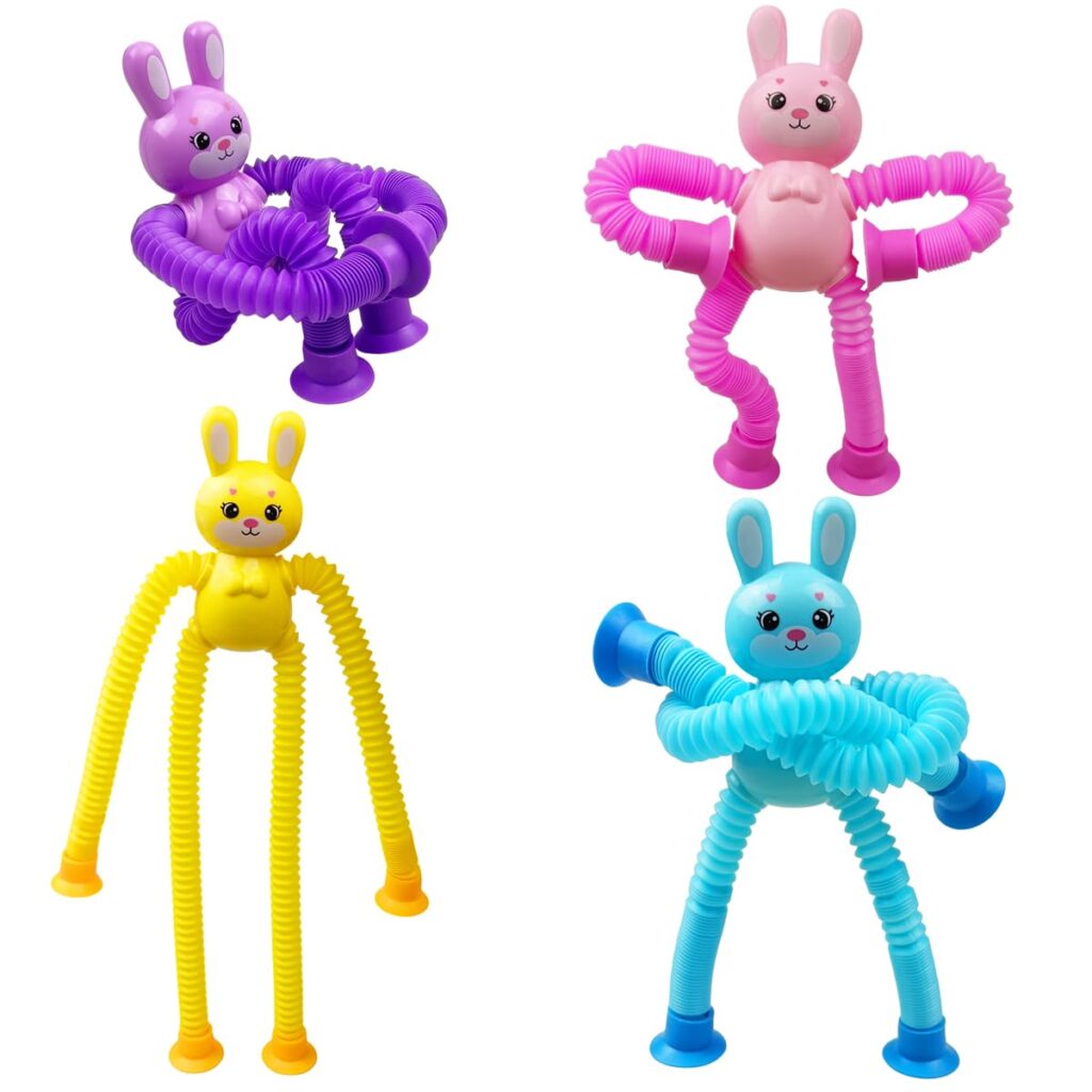Pinkiwine 4 Pack Easter Bunny Suction Cup Pop Tubes Toys Sensory Fidget Toys for Kids Boys Girls Toddlers Easter Basket Stuffers Gifts