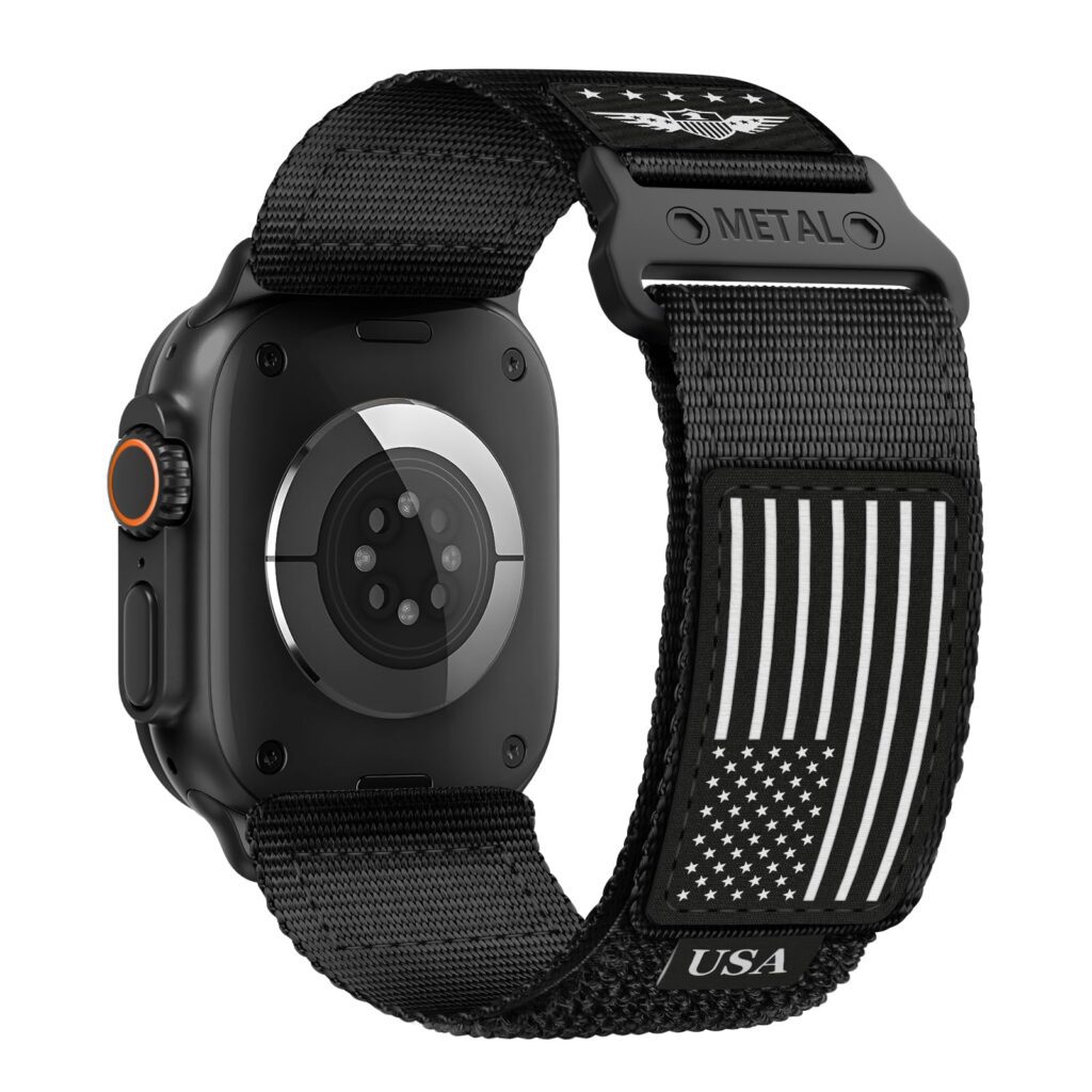 If you want your Apple Watch to look tougher and more personal, this BXUXOHS Rugged Nylon band delivers a bold USA Flag look with an outdoors-ready build. The soft woven nylon textile is designed for comfortable all-day wear, while the sturdy metal buckle and connectors help keep the fit secure through daily use.