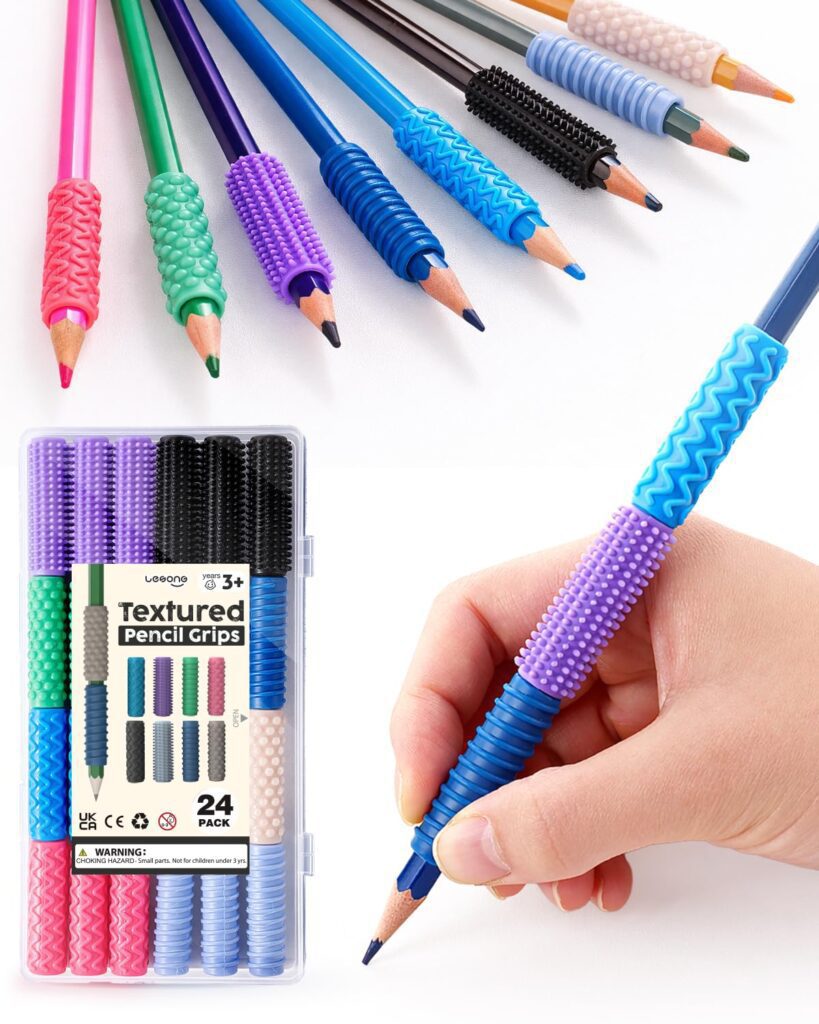 They’re also made for repeat use: the silicone grips are durable and easy to wipe clean, which makes them convenient for classroom prize bins, therapy spaces, homework stations, and shared supply areas. Note: they’re not compatible with jumbo, slim, mechanical pencils, or pens.