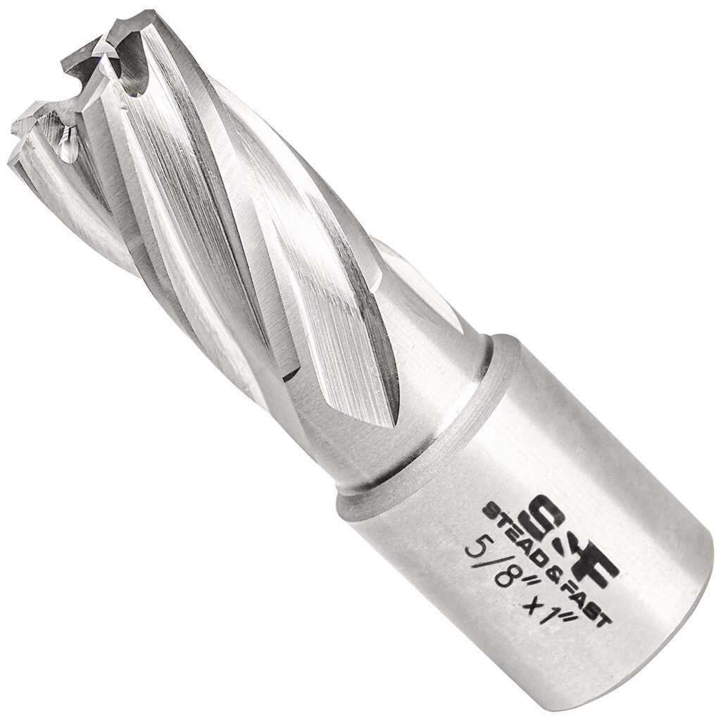 The S&F STEAD & FAST Annular Cutter is built for clean, efficient holemaking with a magnetic drill press. This 5/8″ outside-diameter cutter provides a 1″ cutting depth and is made from super tough M2AL high speed steel (HSS) for durability and wear resistance.