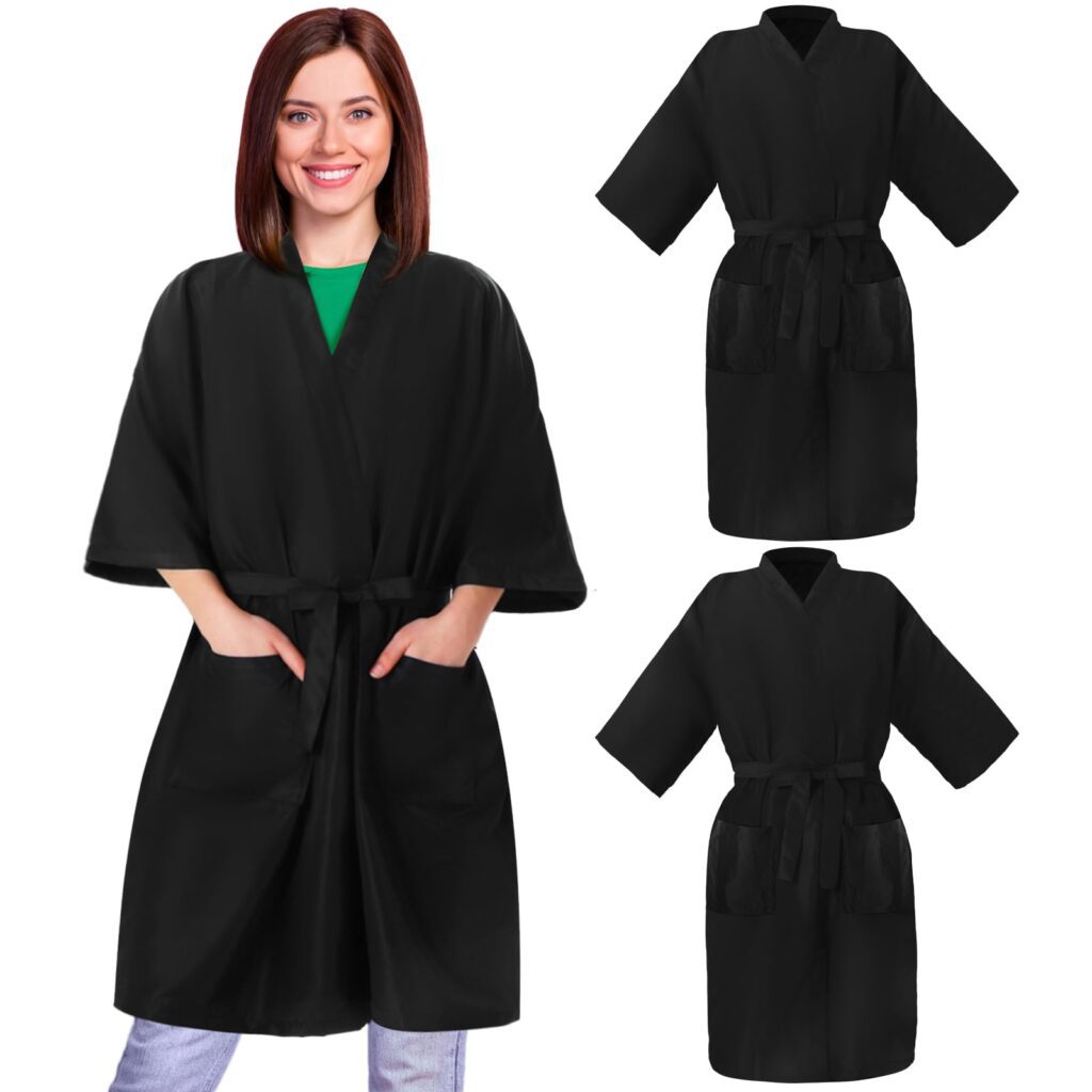 If you’re looking for an easy, budget-friendly way to outfit a chair (or two), the Syhood 2 Pieces Salon Robes Smock set delivers simple coverage for cuts, styling, and other salon services. Each black robe includes two pockets and an adjustable tie waist, making it convenient for quick on/off between clients and everyday use.