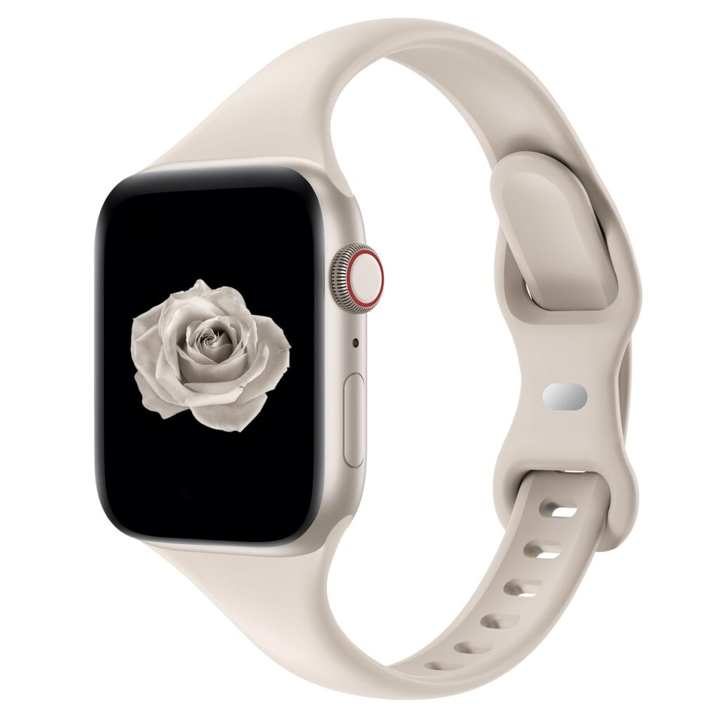 If you want a cleaner, more streamlined look on your wrist, the Acrbiutu Thin Slim Band is designed with a narrow, slim profile that keeps your Apple Watch feeling light and flexible for daily wear or workouts. The band is made from silicone and a flexible elastomer, with sweat and water resistance for active use.