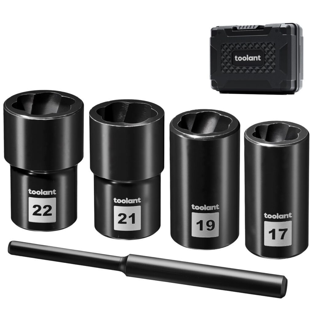 If you’re dealing with a rounded-off lug nut or a stubborn, stripped bolt head, the toolant 5pcs Lug Nut Remover kit is built to help you regain grip and break it loose. It uses an upgraded thread structure with optimized engagement geometry to interlock with damaged fasteners—aimed at reducing slippage during extraction while improving efficiency.