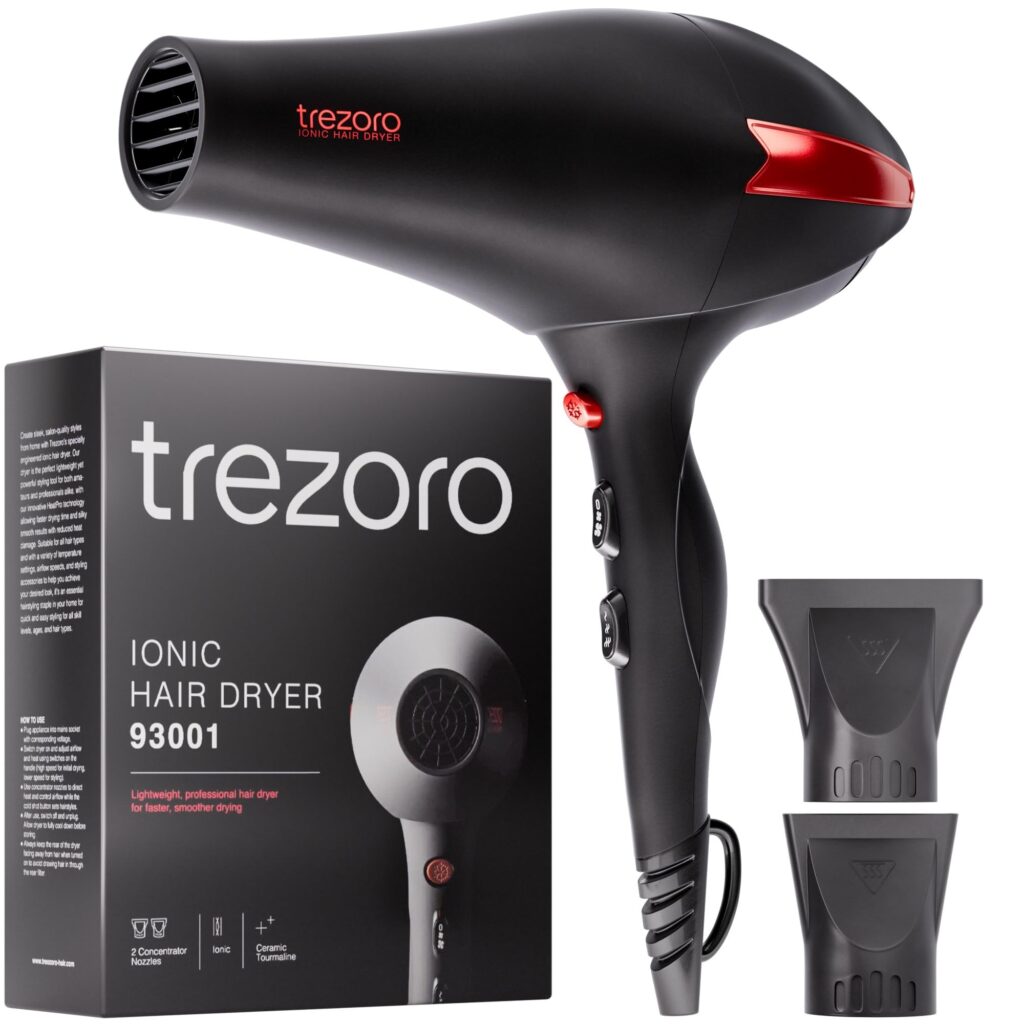 TREZORO Professional Blow Dryer for Women – Ionic Hair Dryer 2000W for Salon & Personal Use – Powerful, Fast & Quiet Drying for Curly Hair, Unwanted Frizz – Design for Travel – 8.2ft Cord – Black Premium Jet Black