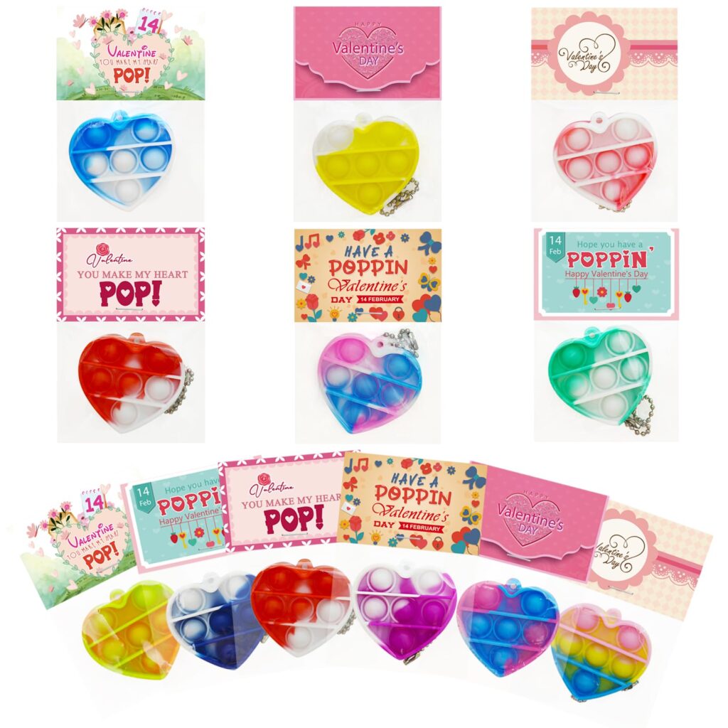 If you’re looking for an easy, all-in-one Valentine exchange for a classroom, this PRAABDC set bundles everything you need: 24 heart mini pop bubble fidget toys, 24 Valentine cards, and 24 keychains. It’s designed for quick handouts at school, parties, and prize tables—no extra shopping required.