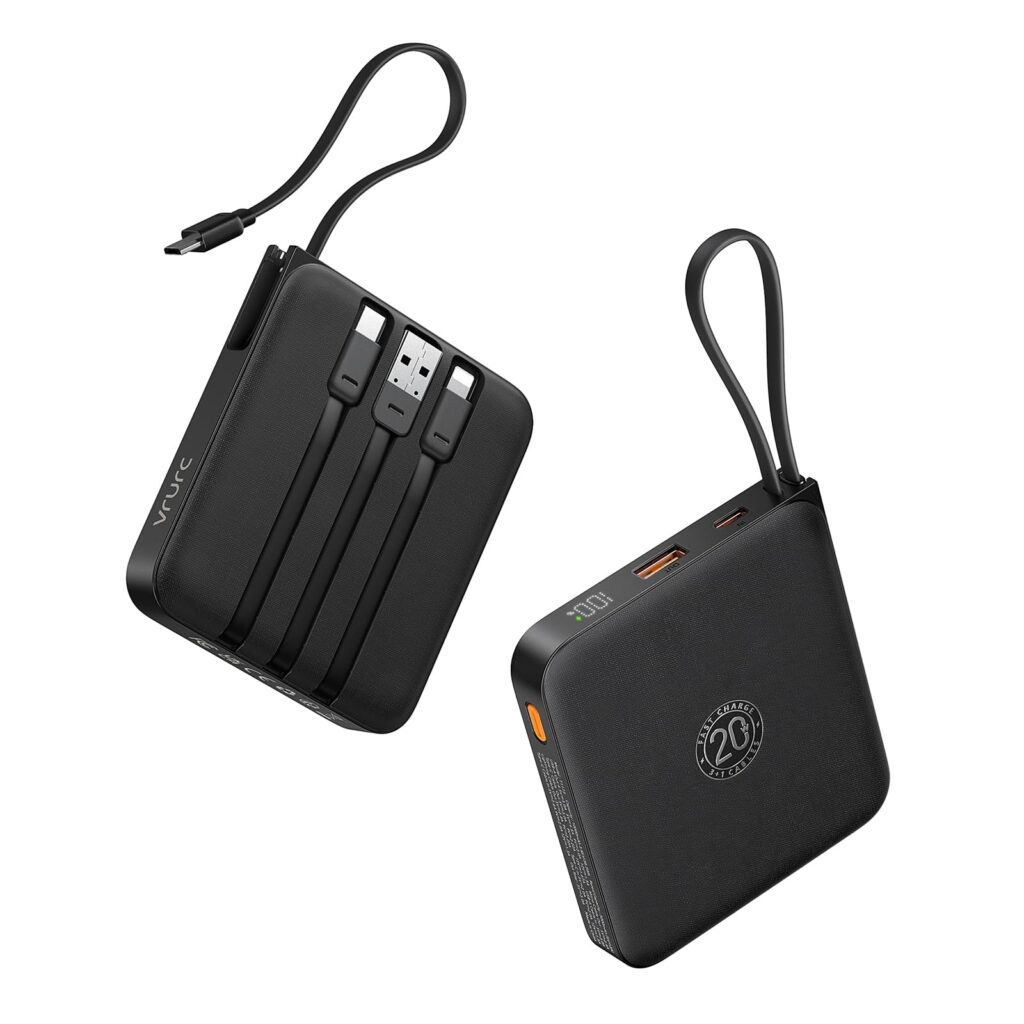 If you want a compact power bank that’s ready to charge right out of your bag, the VRURC Portable Charger with Built-in Cable is designed to simplify travel and everyday carry. With a 10,000mAh capacity and up to 22.5W fast charging, it’s built for quick top-ups—plus it can charge up to 4 devices at once.