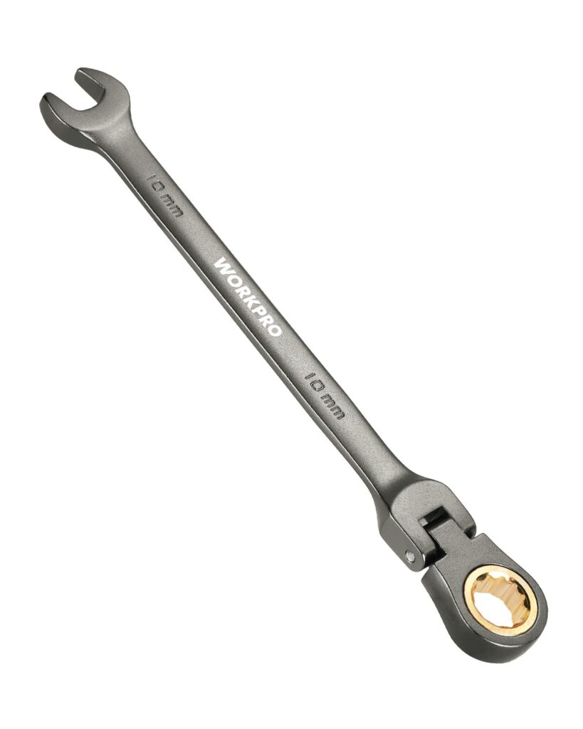 WORKPRO 10 mm Flex-Head Ratcheting Combination Wrench, Cr-V Constructed, Nickel Plating, 72-Teeth, 12 Point Design, Metric 10 mm Nickel Plating